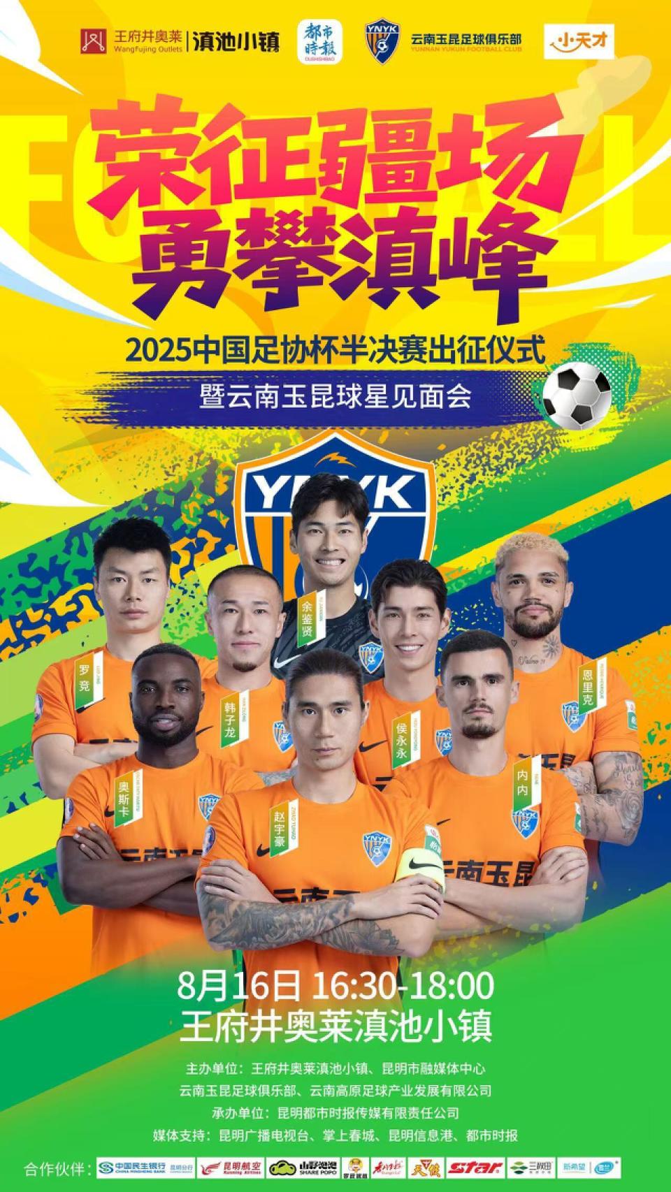 2025中国足协杯半决赛出征仪式暨云南玉昆球星见面会将在王府井奥莱滇池小镇举办